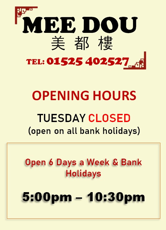 Most of our dishes contain garlic, soya, gluten, cooking wine, sesame oil if you have any allergies to these products, please inform us before before ordering.